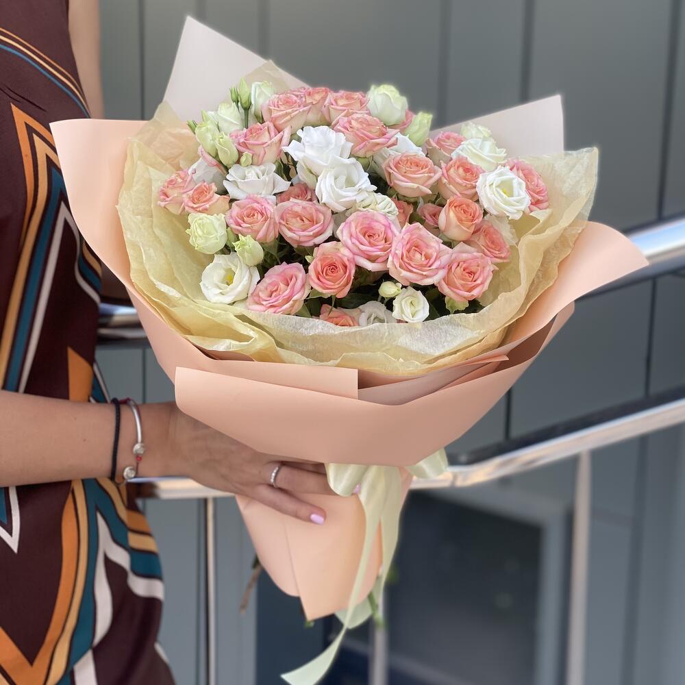 Букет из кустовых роз и эустомы!